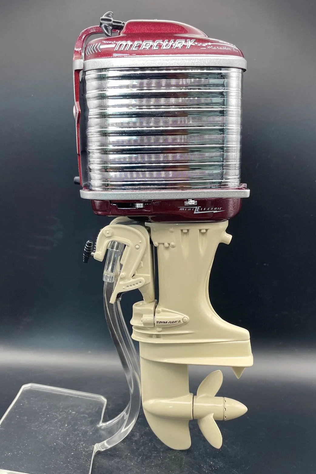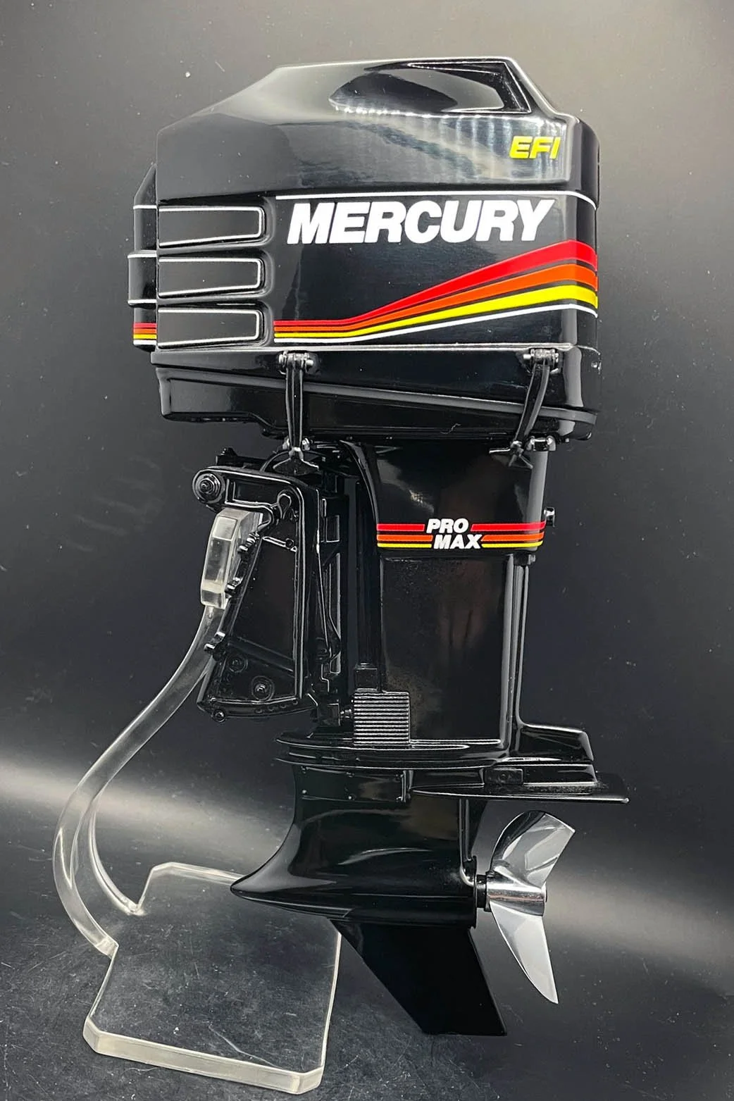 This black with chrome lower unit Mercury Pro Max EFI was in the second series of outboards produced under the original Alterscale owner Karl Beisel.