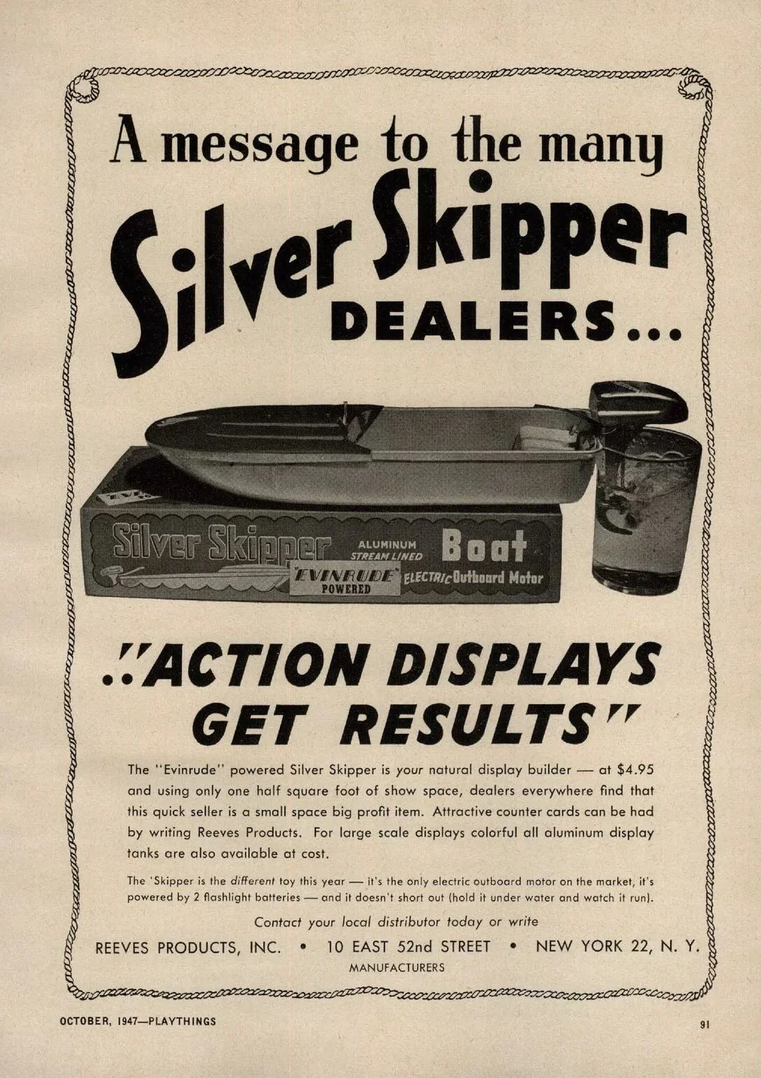 1947, October - Playthings Magazine - Reeves Products "Silver Skipper" manufacturer to dealer ad