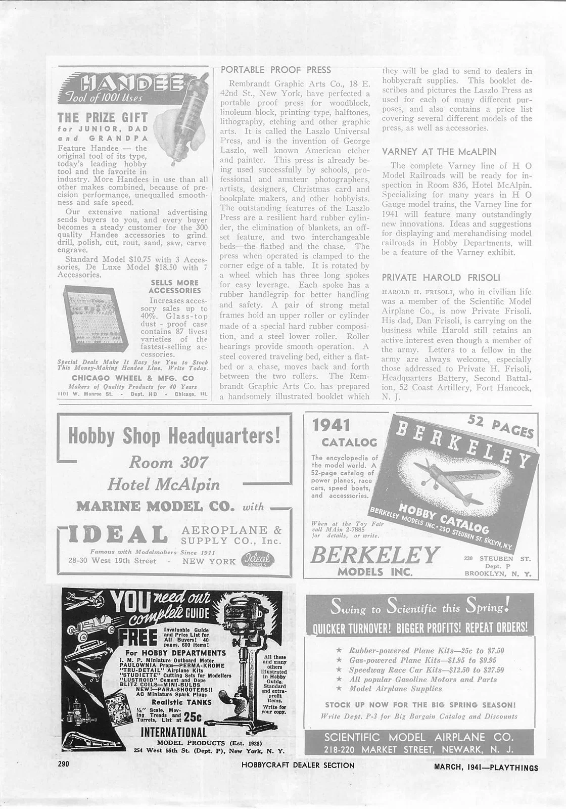 1941, March - Playthings Magazine - I.M.P. (International Models Inc) "Hotel McAlpin" toy fair ad
