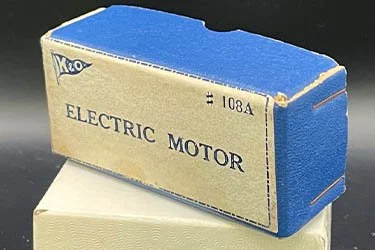 This motor has a larger box than the “smaller box” No.108 due to internal cardboard padding.