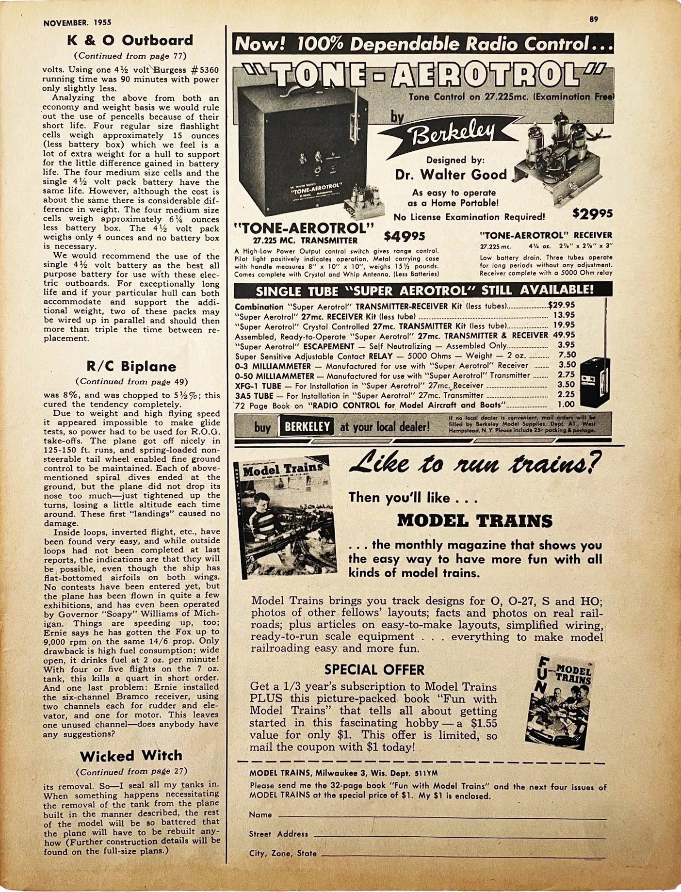 1955, November - Young Men Magazine - " K&O Popularizes Scale D.C. Outboards"