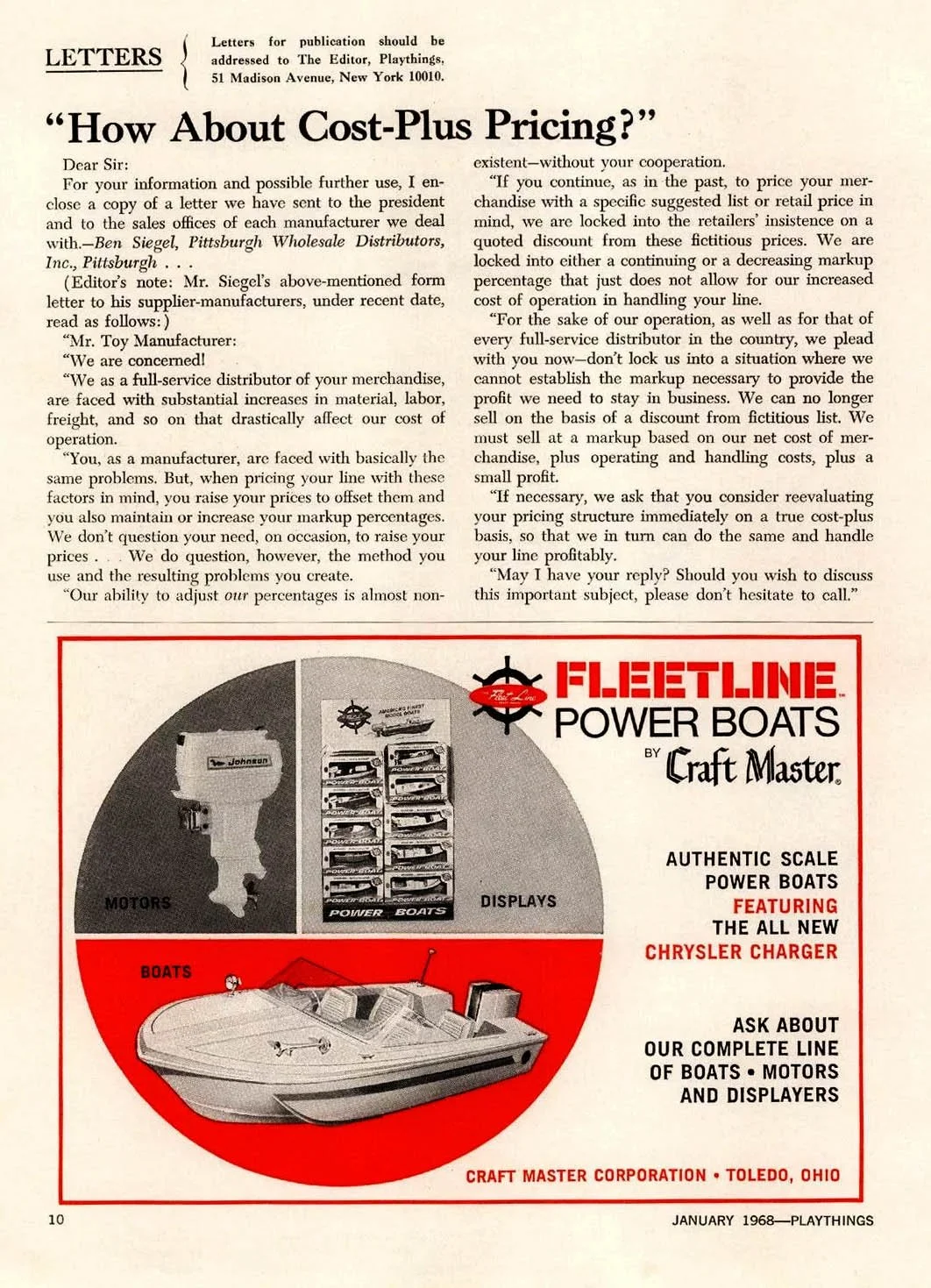 1968, January - Playthings Magazine - "Letters to the editor" Fleet Line by Crafts Master